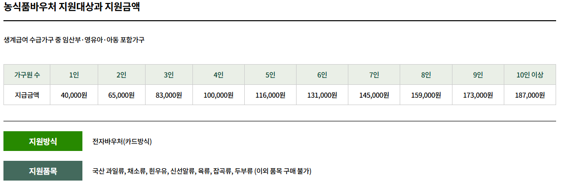 단순한 지원금이 아닌, 건강한 식생활을 위한 신선 식재료 구매 지원 제도랍니다.