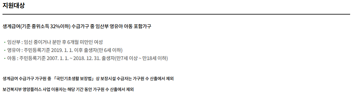 | 영유아 포함 가정 | 2019년 1월 이후 출생, 만 6세 이하 |