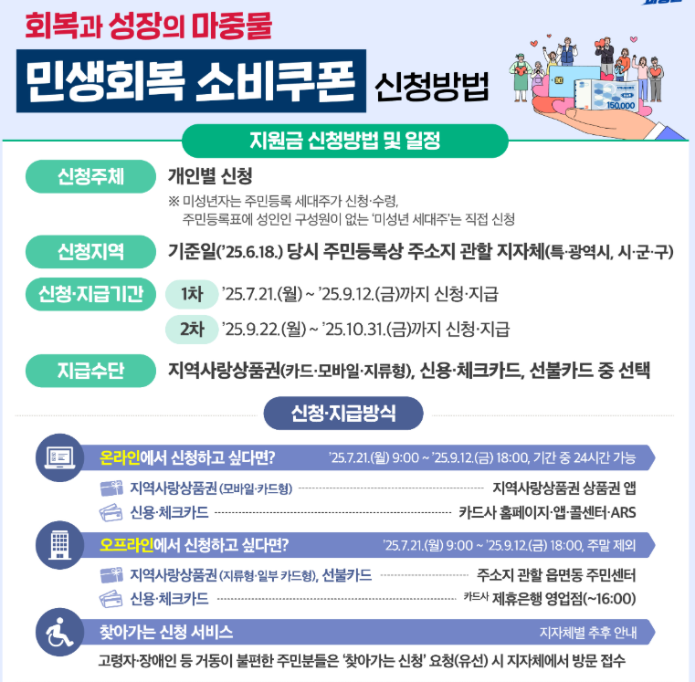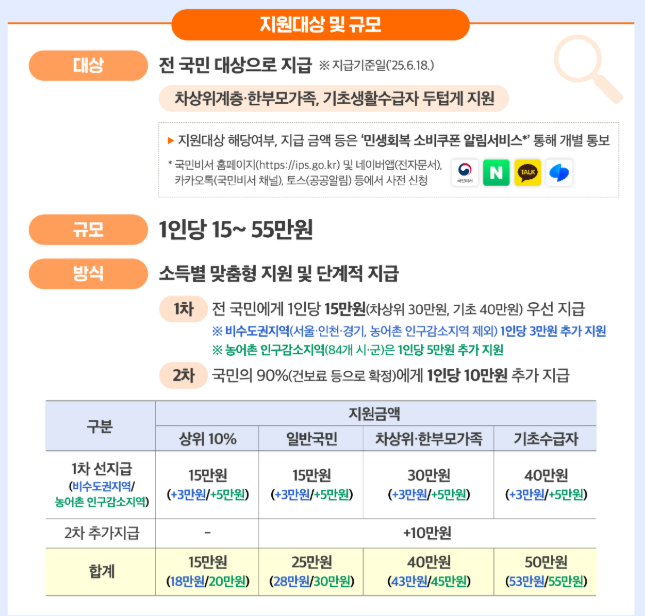 | 1차 | 2025년 7월 21일(월) ~ 9월 12일(금) | 소득별 맞춤형 지급 |