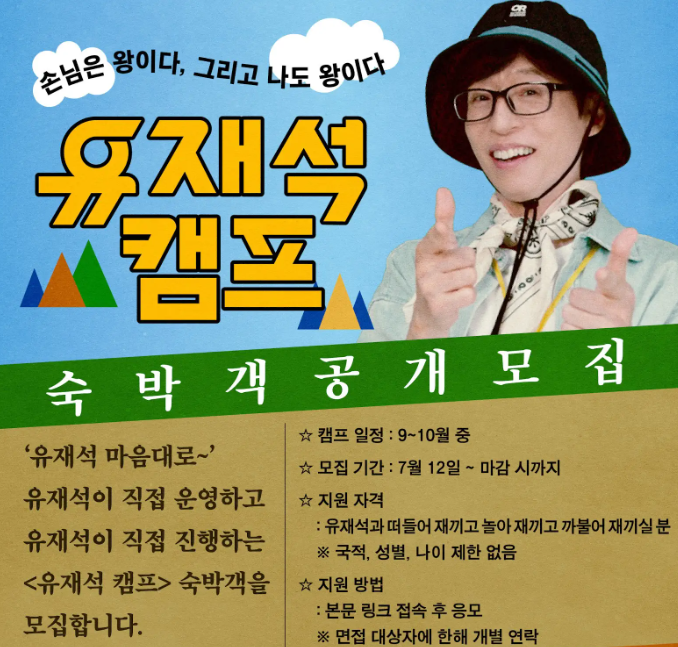 유재석 캠프가 드디어 일반인 숙박객 모집을 시작했다고 해요!