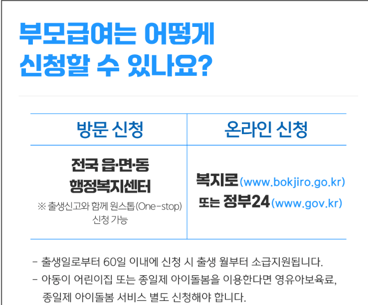부모급여신청, 지급일, 신청방법, 변동사항!