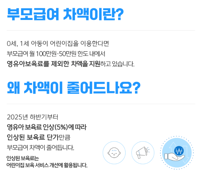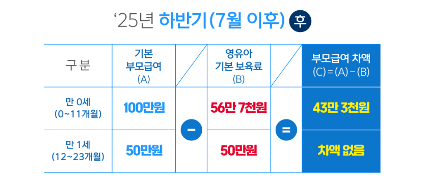 - 2025년 하반기 부모급여는 0세 월 100만 원 / 1세 월 50만 원